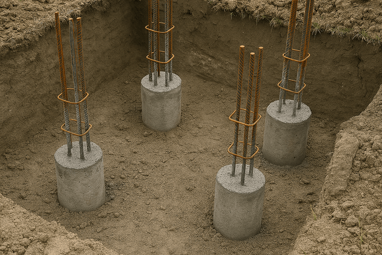 Фундамент на буронабивных сваях — это надежное решение для сложных грунтов и участков с перепадами высот. Он подходит как для маленьких, так и для просторных объектов. Ниже описаны основные этапы устройства фундамента на буронабивных сваях с ростверком, которые мы осуществляем с соблюдением СНиП и современных инженерных норм.